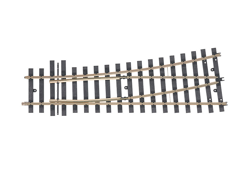 Radius 1.394 mm. Abzweigwinkel 15°. Weichenzungen aus Metall. kombinierbar mit 59092. passender Weichenbock im Lieferumfang enthalten. (H1094)