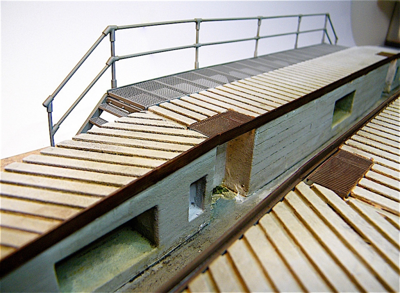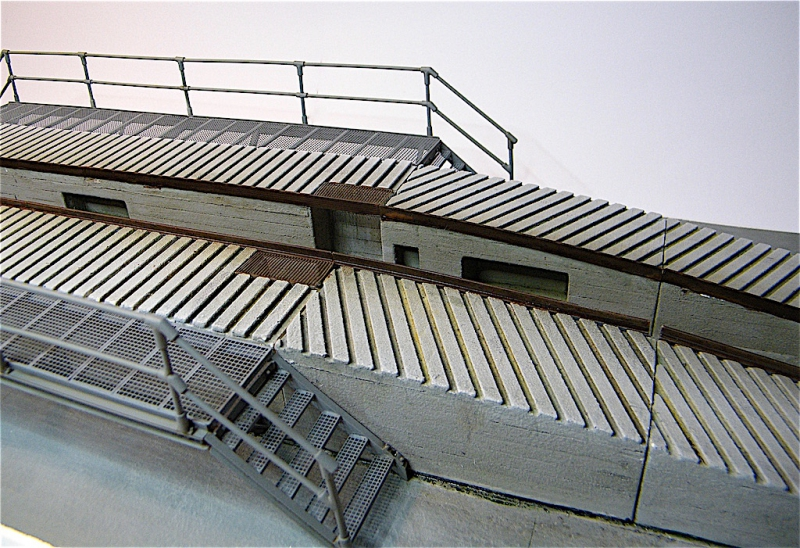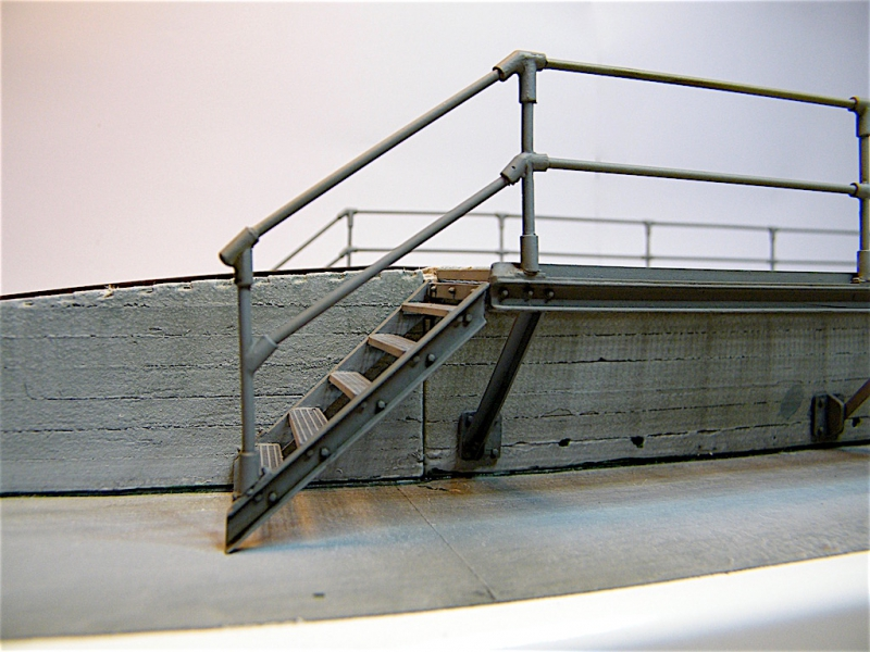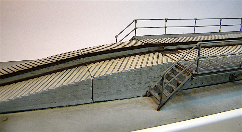 Multimedia Modellbausatz einer Bundeswehr Abschmier- / Wartungsrampe in Betonausführung mit beidseitiger Arbeitsplattform und Treppe im Masstab 1 / 35. Maße: Länge 73.5cm, Breite 11cm, Höhe 7cm.