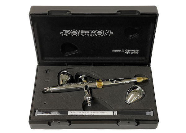 Die kultige Airbrush Pistole EVOLUTION wurde komplett überarbeitet, um eine Airbrush mit einem Leistungs- und Ausstattungsniveau zu schaffen, das es in dieser Preisklasse noch nie gab.