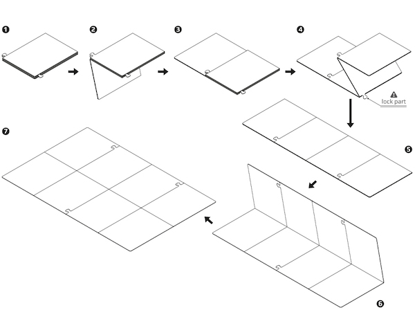 Schneidematte faltbar und dadurch leichter transportierbar.