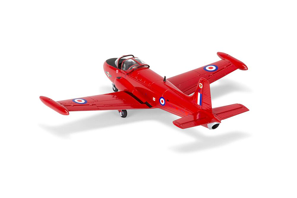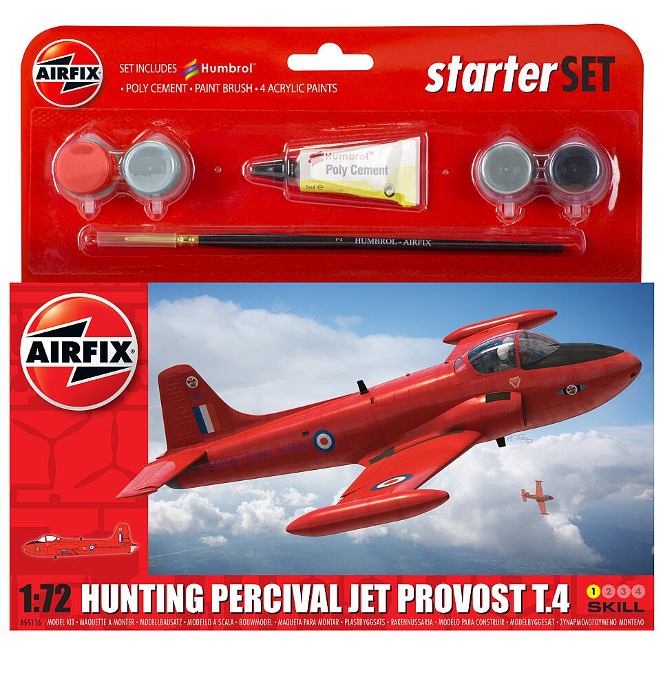 Plastikmodellbausatz eines britischen Jet-Trainers aus den 1950er Jahren. Starter-Set, komplett mit Farben, Pinsel und Kleber.