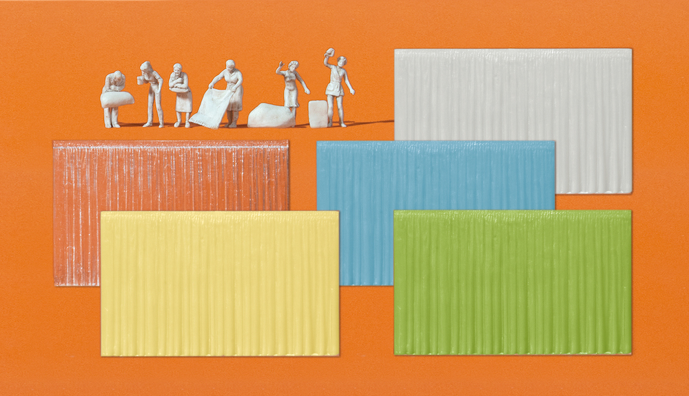 1:87 Am Fenster, 6 unbemalte Miniaturfiguren, 16 Vorhänge