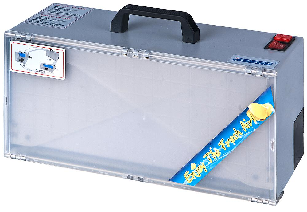 Spray booth for safe handling of paint vapours. 110V - 240V / 50/60HZ, DC 12C, 1.6A. Flow rate 4m³/minute. Weight 3.95kg, noise level approx. 45db.