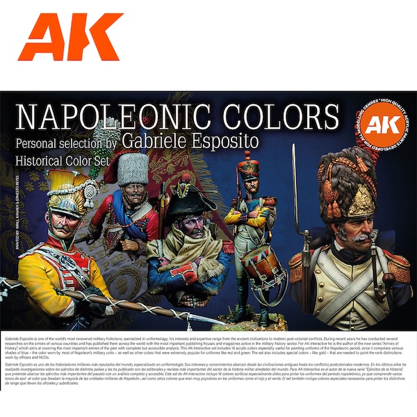 This AK-Interactive set includes 18 acrylic colors especially useful for painting uniforms of the Napoleonic period, since it comprises various shades of blue – the color worn by most of Napoleon’s military units – as well as other colors that were extremely popular for uniforms like red and green.
