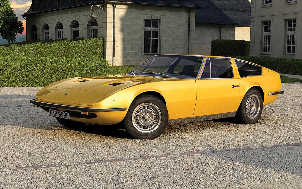Plastikmodellbausatz eines italienischen Sportwagen mit 60 Teilen. Starter-Set, komplett mit Farben und Pinsel. Länge gebaut: 145 mm. Breite: 55 mm.