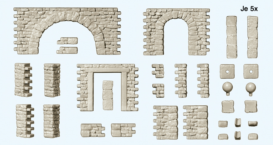 1:87 Bruchsteinmauern m. Toröffnungen und Rundbogen, Eckpf., Zubehör