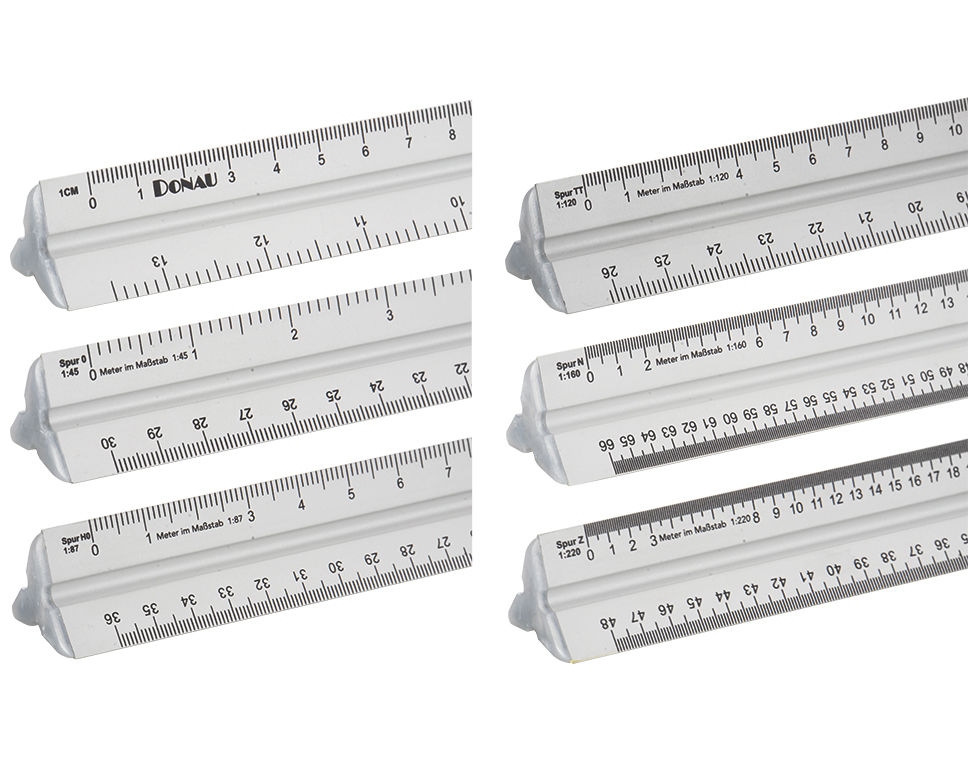 Hochwertiges Aluminium Lineal 30 cm mit cm Raster und folgenden Maßstäben für Eisenbahnmodellbau.