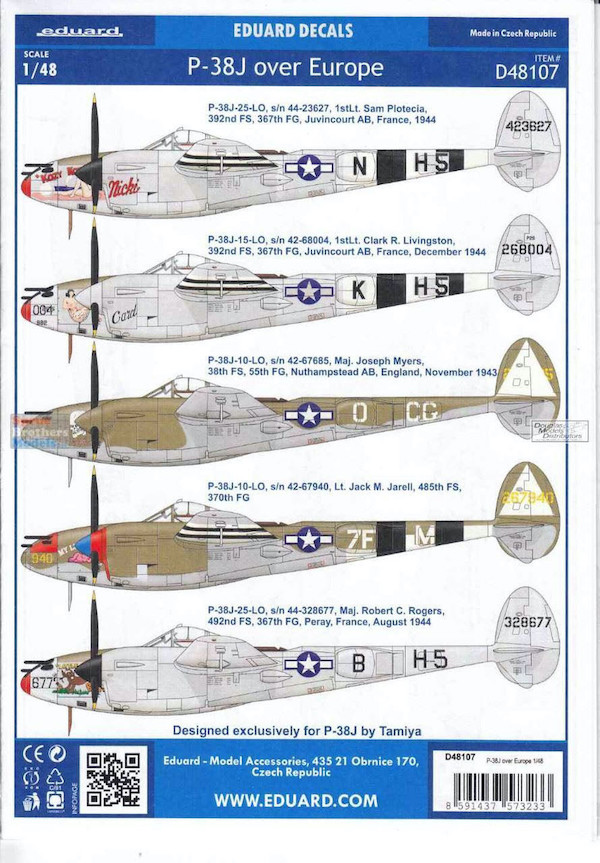1/48 P-38J over Europe Decal