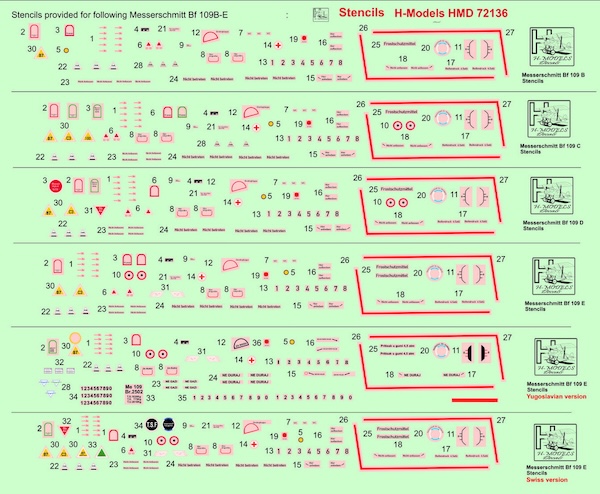 1/72 >Me109 Stencils Swiss